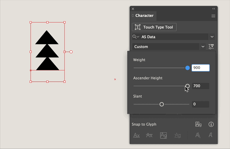 Screenshots of the interactive chart and the paths of the varous axes masters in Glyphs.AppVisit the Prototype Website